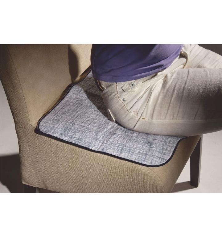 Prateľná inkontinenčná podložka na stoličku z polyesteru s nepriepustnou polyuretánovou vrstvou na spodnej strane. Savosť 2 l / m2, rozmer 45 x 45 cm, veľmi priedušná. Možno prať na 95 °C a sušiť v sušičke, protišmyková, neobsahuje PVC.