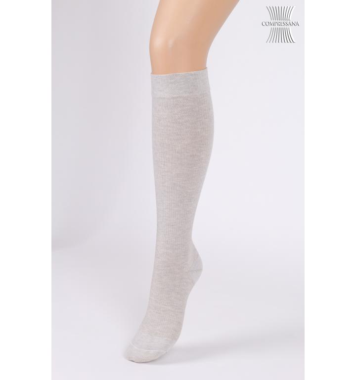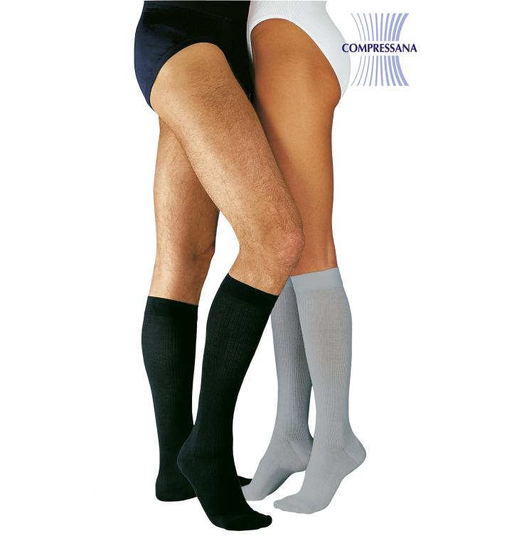 Podporné kompresné podkolienky s podielom strieborného vlákna s antimikrobiálnymi účinkami. Kompresná trieda A, stredná podporná trieda III. Pre prevenciu vzniku kŕčových žíl a opuchov, proti ťažkým, unaveným a boľavým nohám. Vhodné do zamestnania, na doma aj na dlhšie cestovanie. Komfortný rozšírený lem a optimálny strih. Vhodné pre dámy aj pánov.