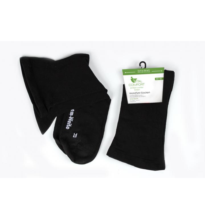 Zdravotné ponožky v čiernej farbe, s extra širokým lemom bez gumičky. Vhodné na opuchnuté nohy, na bandáže a pod., vhodné pre diabetikov.